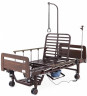 Кровать для лежачих больных Мед-Мос E-45A (MM-5628H-03) для ухода за больными и инвалидами. Рама изделия выполнена из стального профиля и покрыта ударопрочной эпоксидной эмалью. Торцевые ограждения (изголовье и изножье) кровати легкосъемные выполнены из ЛДСП с прорезями.